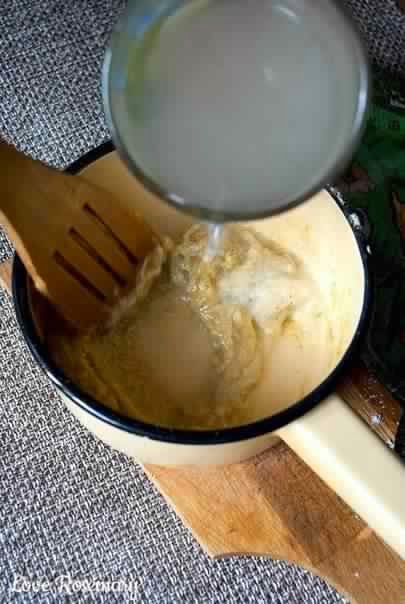 2. On low heat melt the butter, add the flour, salt, pepper and mix. Increase the heat and gradually pour in the chicken broth. Stirring constantly, bring the mixture to a boil. Reduce the heat, add the grated cheese and stir, wait until it has melted.